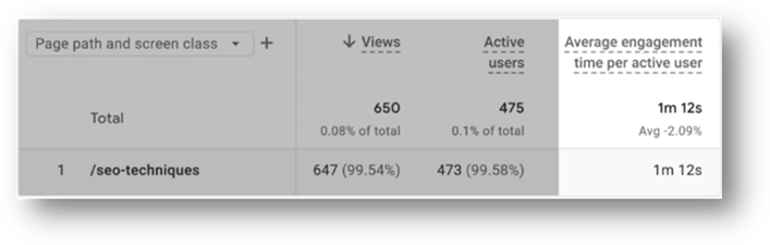 Voici par exemple, voici le temps passé sur une page web pour un contenu avec assez de Bucket Brigades :