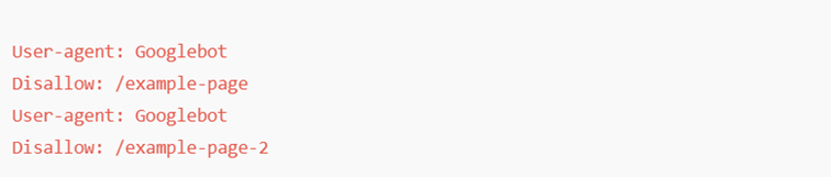 Même si les robots peuvent lire un fichier avec le même User-agent mentionné plusieurs fois, il vaut mieux le mentionner une seule fois.
