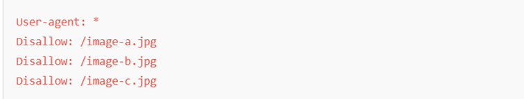 Par exemple, si vous voulez bloquer l’exploration de toutes les images .jpg sur votre site, vous pouvez les lister une à une…