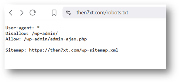 Image : Version initiale de notre robots.txt (le site N7XT est sur WordPress)..