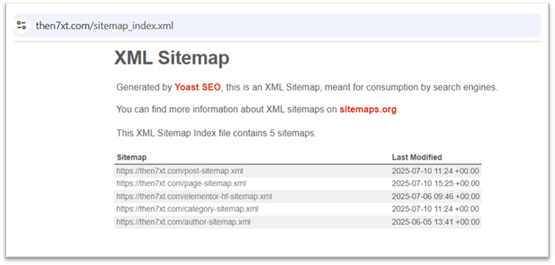Note : Normalement, lorsque vous installez l’extension Yoast SEO, les sitemaps natifs de WordPress sont remplacés par un sitemap généré par Yoast :